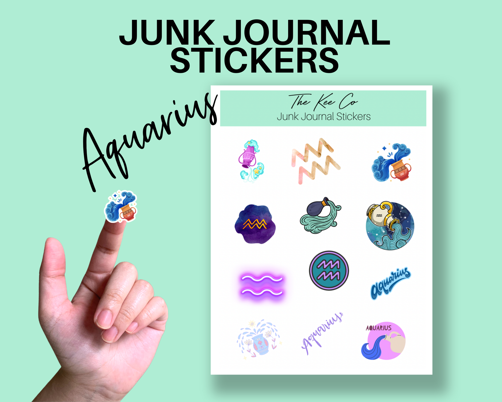 Aquarius Zodiac Junk Journal Sticker Sheet